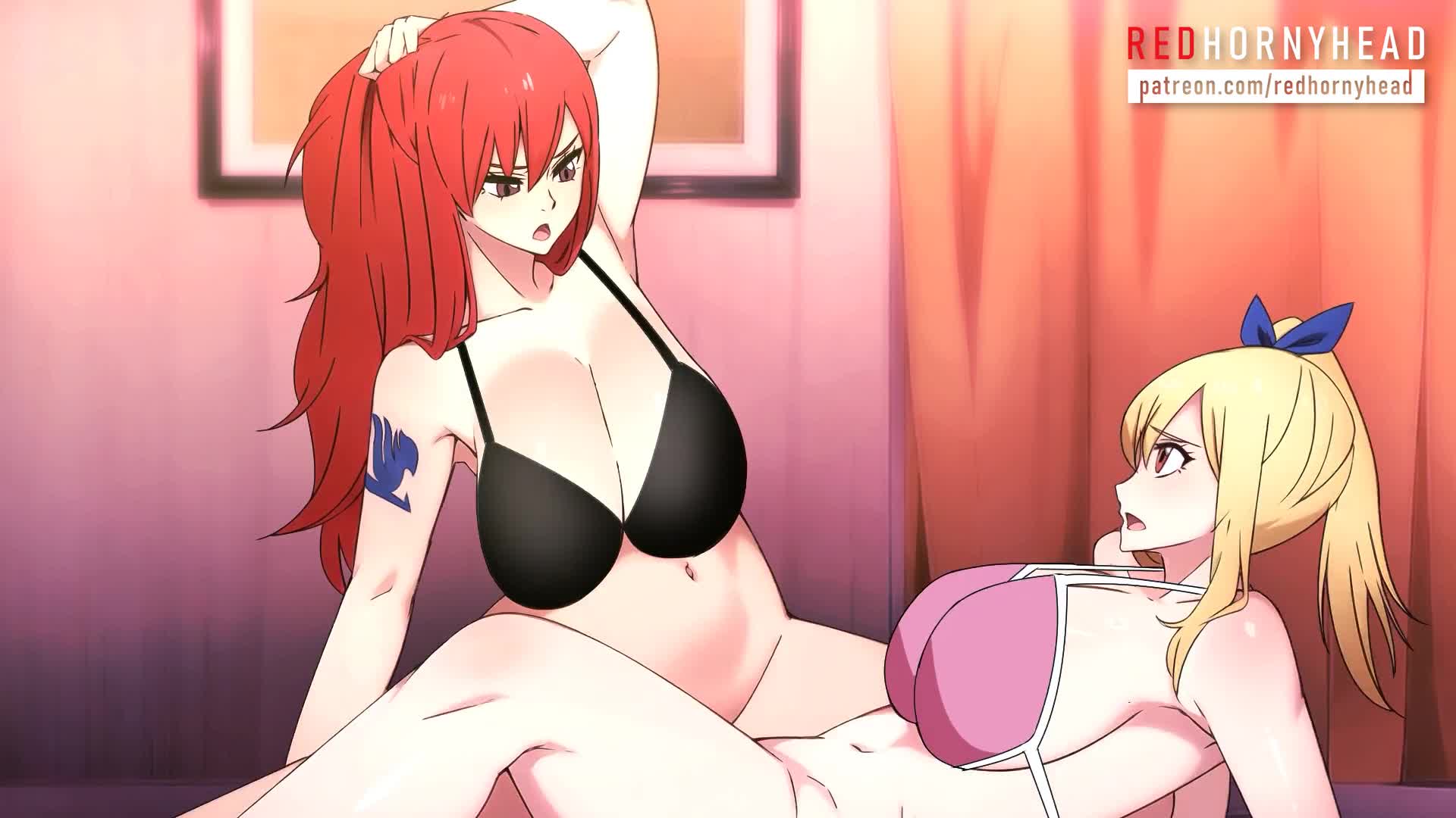 Fairy Tail Erza Scarlet 2girls Animated
